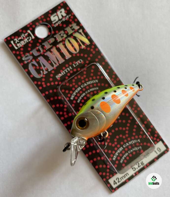 Воблер Smith Camion Super SR — один из крэнков линейки Camion. Тело округлое, в передней части объемное, сужающееся к хвосту. Такая геометрия обеспечивает устойчивость на струе и динамичную игру даже на медленных проводках. Модель весит 5,2г, ее длина составляет 42мм. Расцветок много, подходящую можно выбрать для любого водоема, исходя из степени активности рыбы, с учетом ее пищевых предпочтений на данный момент. Детализация хорошая, особенно в передней части. Глаза крупные, выразительные, вклеенные. За счет обтекаемой формы тела приманка неплохо летит, что позволяет использовать ее для ловли с берега. Воблер плавающий, при проводке заглубляется на 0,5м. Отлично выполняет свою функцию при ловле под нависшими над водой деревьями и кустами. Он интересен голавлю, окуню. Благодаря размеру крэнк отсекает мелких особей. Лопатка небольшая, округлой формы. Монтажная петля смещена ближе к основанию. Во время движения приманка создает слабые звуковые колебания, чем приманивает хищника, который кормится неподалеку. Игра среднеамплитудная, высокочастотная. Течение не мешает проводке, воблер может быть использован на реках и ручьях. Комплектация двумя тройниками дает уверенность в том, что каждая поклевка будет реализована.