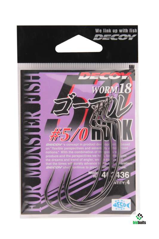 Офсетные крючки Decoy Worm 18 Monster Bass №5/0 (4 шт. в уп.)