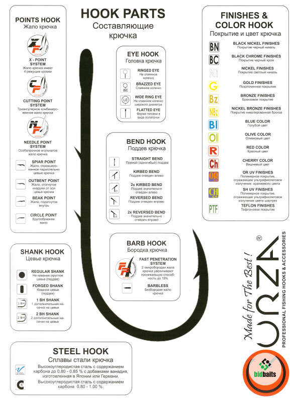 • Сплав стали для крючка - высокоуглеродистая сталь с содержанием углерода 0.8-1%;