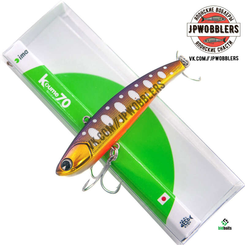 Средняя по размеру модель Koume 70 длинной семь сантиметров и весом 13 гамм. В подвешенном состоянии в воздухе Koume 70 занимает горизонтальное положение с небольшим креном на нос. В воде благодаря воздушной камере в теле приманки, расположенной ближе к хвостовой части, крен на нос увеличивается. Это вносит свои нюансы в поведение Koume 70 на проводке. Игра очень активная, живая с дальним уходом от вертикали. И что самое главное – сохраняется тот неповторимый момент, когда наша приманка при сбросе отлично планирует на боку в сторону и потом возвращается в точку первоначального движения.