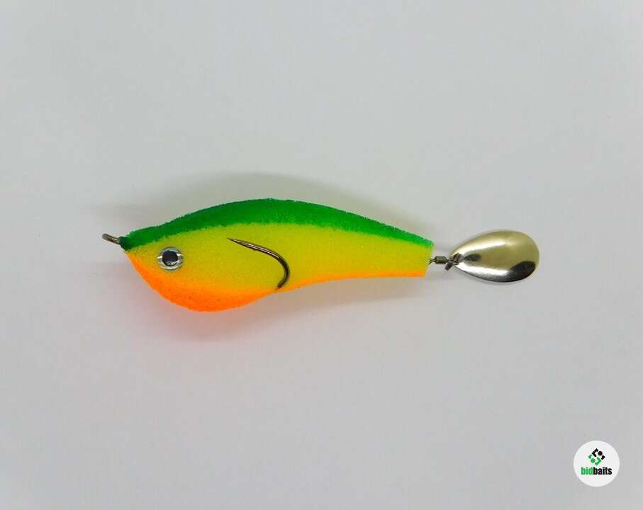 Приманка из поролона на двойнике Eagle Claw(прямое жало, длинное цевье) №1,0. Двойник слегка прижат к телу, что дает преимущество для ловли в корягах и не мешает реализации поклевок. При проводке лепесток начинает вращаться, а так же во время свободного падения, чего невозможно добиться никакими другими приманками. Тем самым привлекая к атаке любого хищника и некоторых видов мирных рыб. В окрасе присутствует флуоресцентная краска. Поролон живой, не печеный. Полностью ручная работа. Длина поролонового тела примерно 7см.