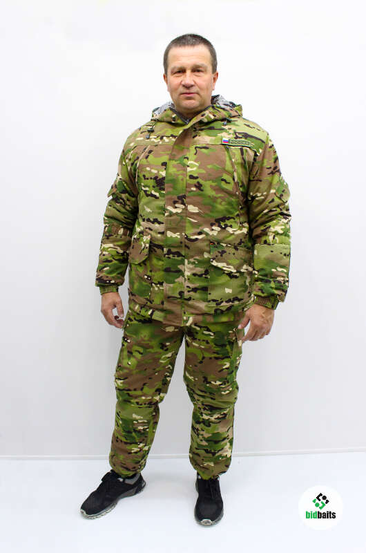 Мужской зимний костюм для низких температур. Куртка оснащена центральной застежкой на молнии, закрывающейся планкой на кнопках. От ветра защищает капюшон с утягивающим шнурком с фиксатором, рукав на резинке. На куртке в верхней части 2 прорезных кармана с листочкой и кнопками, 2 нижних фигурных накладных кармана с клапаном и 1 внутренний.