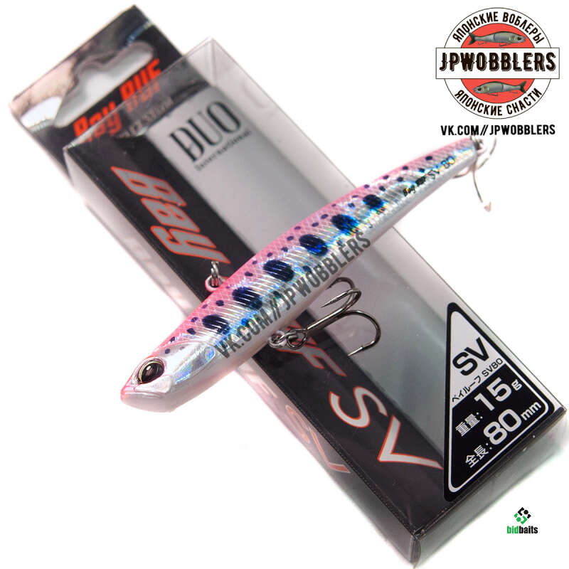 Одной из очень удачных и уловистых приманок фирмы является воблер DUO Bay Ruf SV-80. Эта наживка относится к семейству Vib воблеров. Модель этого волкера, как в принципе и все "Вибы", идеально показывают себя при ловле хищников на глубоких местах или сильном течении. Это обуславливается прогонистым телом приманки с достаточно большим ее удельным весом. Не исключением стал и воблер DUO Bay Ruf SV-80. Имея длину тела в 80 мм и вес 15 гр, этот тонущий виб оказался весьма эффективным.