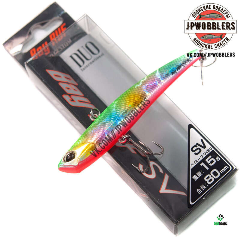 Одной из очень удачных и уловистых приманок фирмы является воблер DUO Bay Ruf SV-80. Эта наживка относится к семейству Vib воблеров. Модель этого волкера, как в принципе и все "Вибы", идеально показывают себя при ловле хищников на глубоких местах или сильном течении. Это обуславливается прогонистым телом приманки с достаточно большим ее удельным весом. Не исключением стал и воблер DUO Bay Ruf SV-80. Имея длину тела в 80 мм и вес 15 гр, этот тонущий виб оказался весьма эффективным.