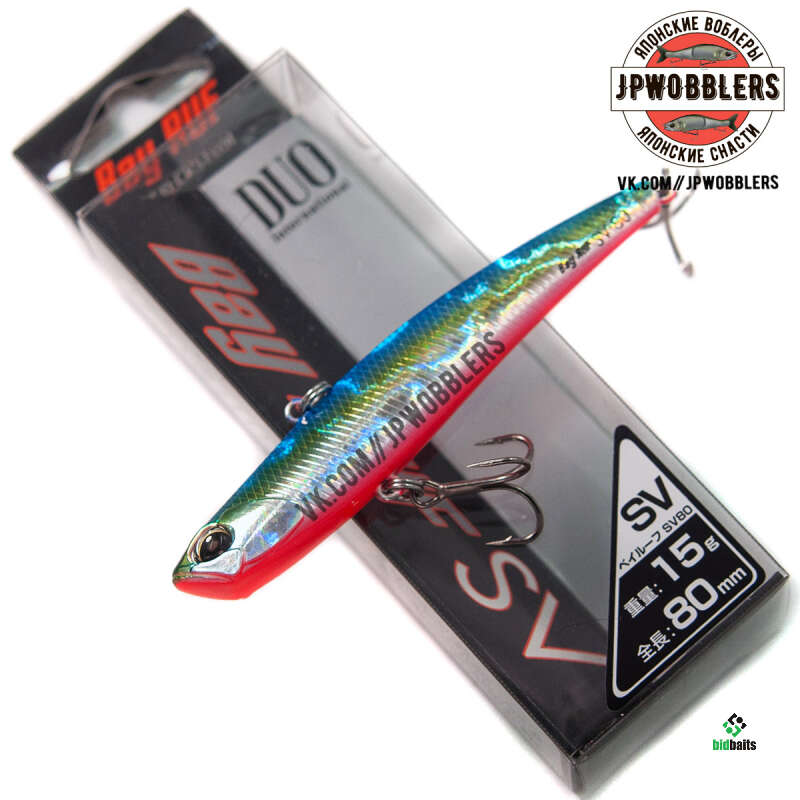 Одной из очень удачных и уловистых приманок фирмы является воблер DUO Bay Ruf SV-80. Эта наживка относится к семейству Vib воблеров. Модель этого волкера, как в принципе и все "Вибы", идеально показывают себя при ловле хищников на глубоких местах или сильном течении. Это обуславливается прогонистым телом приманки с достаточно большим ее удельным весом. Не исключением стал и воблер DUO Bay Ruf SV-80. Имея длину тела в 80 мм и вес 15 гр, этот тонущий виб оказался весьма эффективным.
