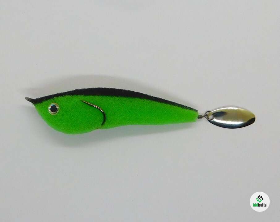 Приманка из поролона на двойнике Eagle Claw(прямое жало, длинное цевье) №1,0. Двойник слегка прижат к телу, что дает преимущество для ловли в корягах и не мешает реализации поклевок. При проводке лепесток начинает вращаться, а так же во время свободного падения, чего невозможно добиться никакими другими приманками. Тем самым привлекая к атаке любого хищника и некоторых видов мирных рыб. Поролон живой, не печеный. Полностью ручная работа. Длина поролонового тела примерно 9см.