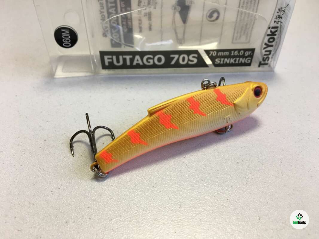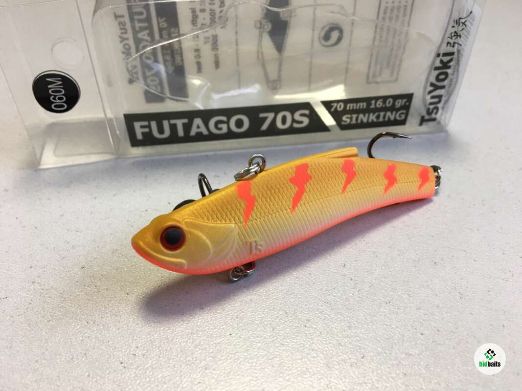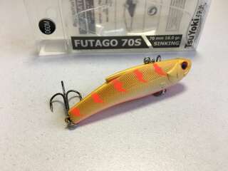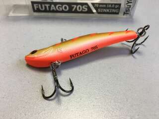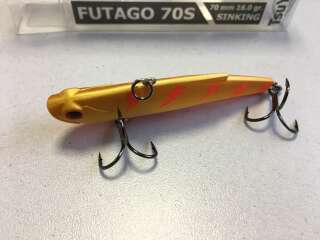 Воблер Futago имеет разделенную боковой линией рельефную фактуру поверхности, которая выполнена в виде ромбовидных насечек – чешуек. Головная часть воблера рельефно имитирует жаберные крышки, а вклеенные 3D глаза завершают реалистичный внешний вид приманки. В тело приманки встроена шумовая камера, создающая дополнительный звуковой раздражитель при работе раттлина. Futago оснащен двумя тройниками, а также надежной фурнитурой и силовыми заводными кольцами. Качественное лакокрасочное покрытие и широкая цветовая гамма.