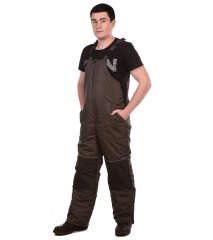 Полукомбинезон с двух замковой молнией, усиленный наколенниками. Также имеются два накладных кармана. По бокам эластичные вставки из рибаны (эластичная ткань). Низ полукомбинезона с уширением на молнии. На изделии все карманы утеплены внутри флисом. На брючине в зоне колена есть карман на липучке для установки термоизолирующего вкладыша. В качестве вкладыша можно использовать вспененный полиэтилен, полиуретан и т.д. Подкладка брючин полукомбинезона - Taffeta 210Т.