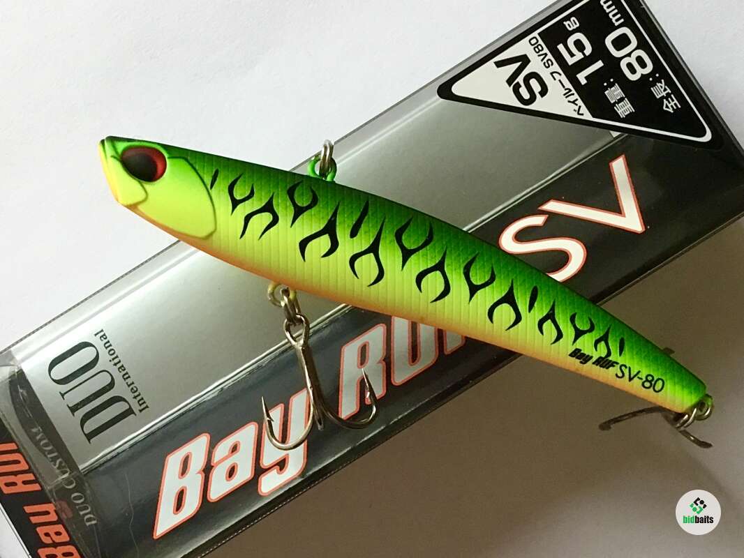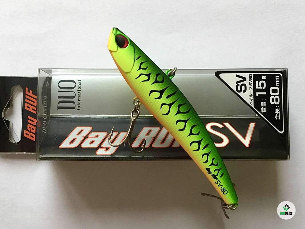 Bay Ruf SV80 – это воблер семейства VIB (vibrations) прогонистой формы с большим удельным весом используются как правило, при ловле взаброс на глубоких местах как с берега, так и с лодки, как в стоячей воде, так и на течении, и даже сильном. В таких условиях данный тип приманок действительно очень эффективен и уловист.DUO Bay Ruf SV 80 отлично зарекомендовал себя для ловли в отвес из подо льда . За счёт своей игры и движения по спирали она облавливает достаточно большое пространство, а её уловистость превосходит многие именитые балансиры. Вряд ли Масахиро Адачи думал про балансиры, создавая свой Bay Ruf SV. Он всё-таки стремился создать нестандартный VIB. Но получилась приманка, которая демонстрирует игру лучших балансиров, сконструированных специально для зимней рыбалки. А уловистость… с высокой долей уверенности можно предположить, что вам будет сложно найти аналог, который сможет обойти DUO Bay Ruf SV 80 по этому показателю. .Проводка зимой - рывковая с большими паузами, летом - джиговая.