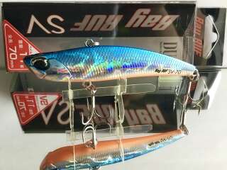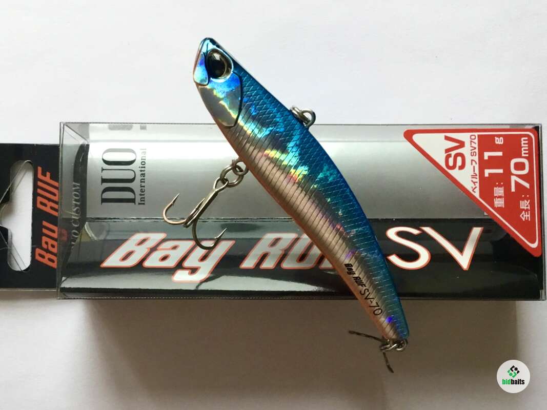 Bay Ruf SV70 – это воблер семейства VIB (vibrations) прогонистой формы с большим удельным весом используются как правило, при ловле взаброс на глубоких местах как с берега, так и с лодки, как в стоячей воде, так и на течении, и даже сильном. В таких условиях данный тип приманок действительно очень эффективен и уловист.DUO Bay Ruf SV 70 отлично зарекомендовал себя для ловли в отвес из подо льда . За счёт своей игры и движения по спирали она облавливает достаточно большое пространство, а её уловистость превосходит многие именитые балансиры. Вряд ли Масахиро Адачи думал про балансиры, создавая свой Bay Ruf SV. Он всё-таки стремился создать нестандартный VIB. Но получилась приманка, которая демонстрирует игру лучших балансиров, сконструированных специально для зимней рыбалки. А уловистость… с высокой долей уверенности можно предположить, что вам будет сложно найти аналог, который сможет обойти DUO Bay Ruf SV 70 по этому показателю. .Проводка зимой - рывковая с большими паузами, летом - джиговая.