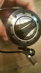 Симпатичная катушка, дизайн очень стоящий. Чего только стоят облегченная шпуля и ротор, все в дырках. По весу катушка вышла довольно легкая для своего размера, хорошо лежит в руке. Отличный фрикцион, не длинный, в отличие от многих современных моделей, а вот ровно такой, какой надо. И удобная ухватистая гайка фрикциона.