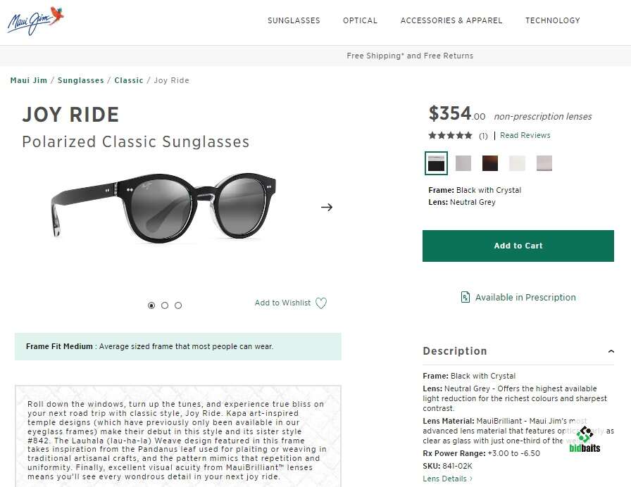 Lens Material: MauiBrilliant