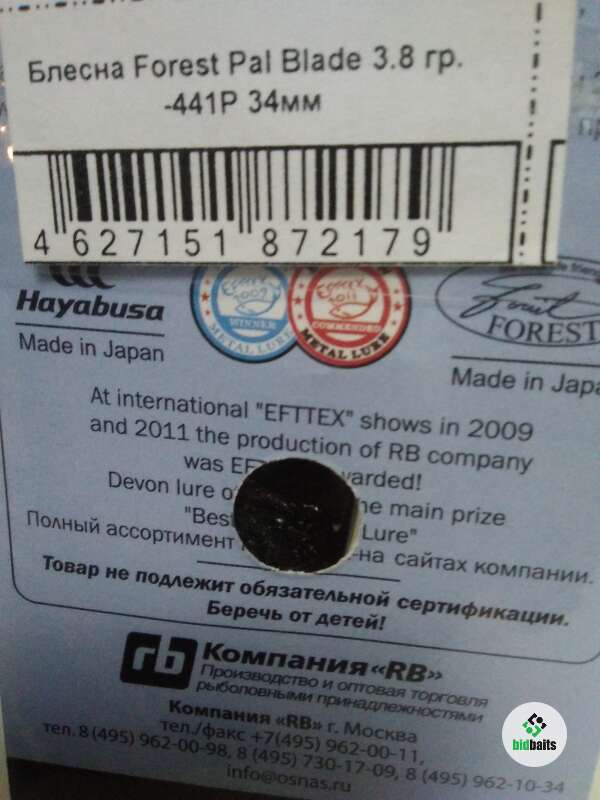 Блесна FOREST PAL Blade 3.8g, #441P, 34mm.