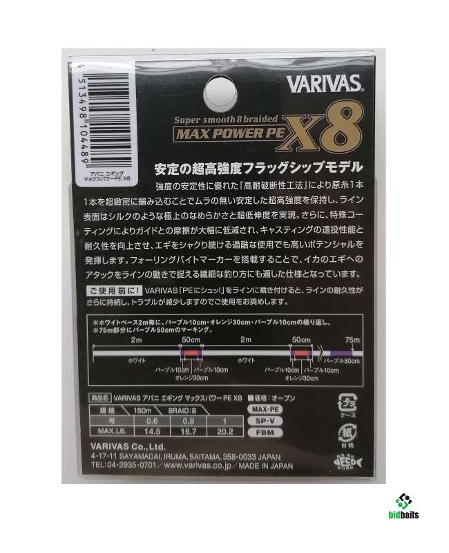 8-ми жильный РЕ #0.8 (16.7 lb)/0,148mm (7,5кг) 150m ; шнур с фирменным SP-F покрытием. Это покрытие повышает водоотталкивающие свойства лески, увеличивает дальность заброса, улучшает устойчивость лески к трению, а так же улучшает чувствительность. Шнур прочнее в 1,3-1,5 раза, чем у обычный РЕ.