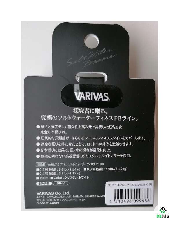 плетённый шнур 8-ми жильный VARIVAS Avani Salt Water Finesse PE x8 150m #0.3 (7.5lb) цвет Crystal White