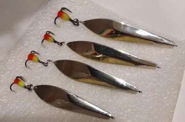 Зимние блесны на окуня ручной работы (Латунь - Мельхиор). Набор 4 шт = 2000 руб