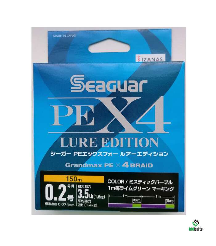 4-х жильный плетённый шнур Kureha Seaguar PE X4 LURE EDITION Grandmax фиолетово-зелёный 150м #0.2 (0,074мм) 3.5lb (1,6 кг), made in Japan.