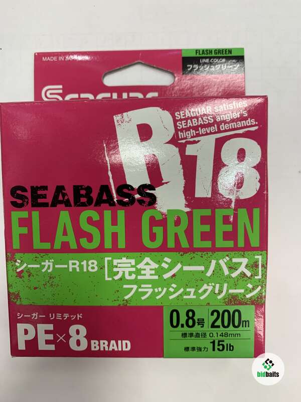 Плетеный шнур Seaguar R-18 Kanzen Seabass Flash Green X8 200m #0.8
