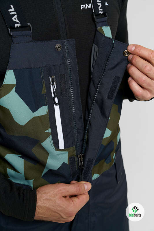 Утеплённый полукомбинезон оснащён регулируемыми по длине интегрированными подтяжками, дополнительной регулировкой длины штанин по низу, двумя боковыми карманами и одним нагрудным карманом на молнии, артикулированными 3D коленями, внутренними снегозащитными гетрами и интегрированной регулировкой объёма в области талии, дополнительной эластичной вставкой в боковых швах. В этой модели использованы технологии, обеспечивающие комфорт и долгий срок службы.