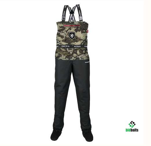 Облегченные вейдерсы для тех, кто предпочитает комфорт. У Wademan минимальное количество швов, особенно во внутренней области ног. Многим знакомо, что вейдерсы по мере износа начинают протекать по швам, меньше швов — выше надежность. Нижняя часть вейдерсов (до пояса) выполнена из прочной четырехслойной ткани с мембраной HARD-TEX, верх — из облегченной ткани. Вейдерсы оснащены двумя карманами с защитой от воды, анатомическим кроем, D -образными петлями, петлями для просушки, эластичными подтяжками и ремнем с логотипами FINNTRAIL на замке YKK. В комплекте гермочехол для смартфона и документов.