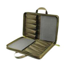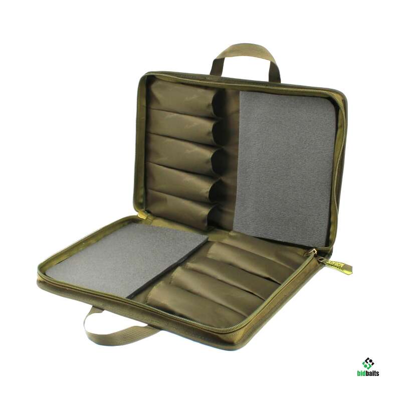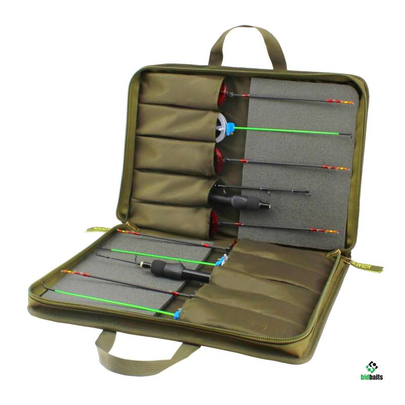 Чехол для зимних удочек жесткий Ч-42 Aquatic вмещает до 10 удочек длиной до 380 мм. Чехол выполнен из прочного непромокаемого материала, имеет надежную двухстороннюю молнию и двойную ручку из стропы для переноски. На каждой стороне чехола для зимних удочек жесткий Ч-42 Aquatic расположены по 5 отделений из нейлона для фиксации удилищ и мягкие вставки из пены для сохранности хлыстиков.