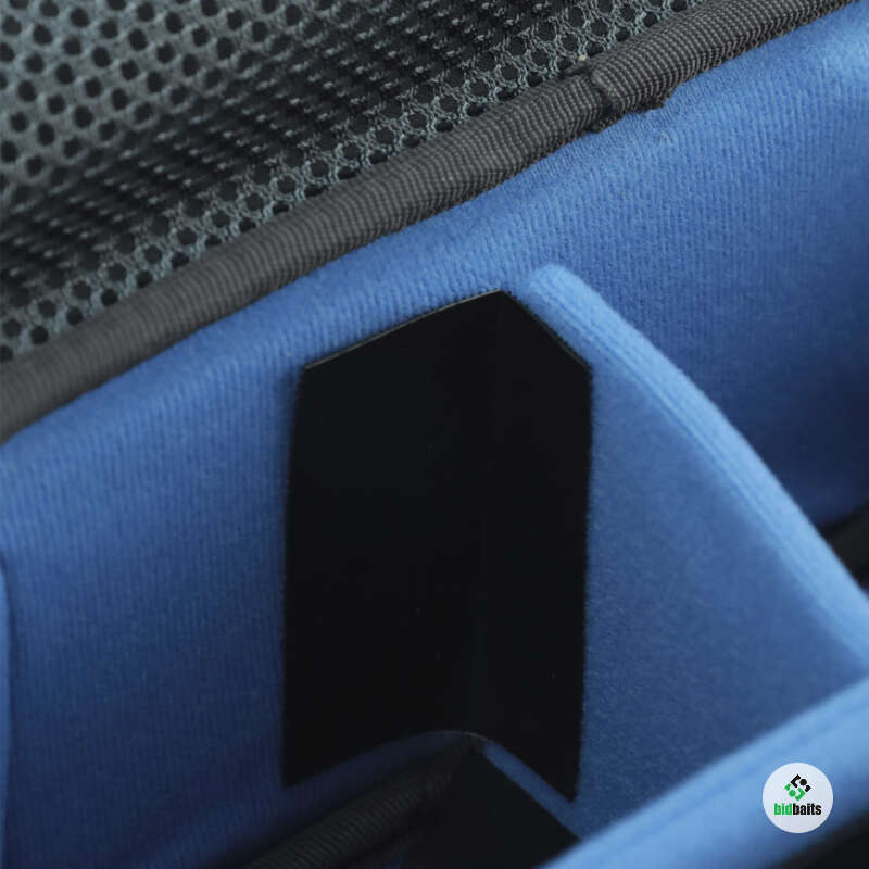 Сумка С-39 для кормушек, грузов, оснасток и т.д. имеет сверху прорезиненную ручку, закрепленную на жесткой пластиковой крышке. Внутри в верхней части расположен дополнительный карман из сетки на молнии, нижняя часть разделена эластичными перегородками на 4 ячейки, которые крепятся с помощью липучек, благодаря чему количество и размеры ячеек можно варьировать при необходимости.