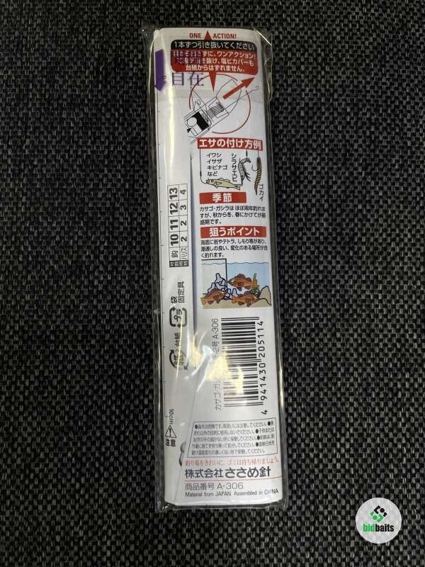 Крючки Sasame номер 11 с поводками номер 2 (0,235 мм). Длина поводка 65 см. В упаковке 7 поводков. Интересная форма жала - внутрь.