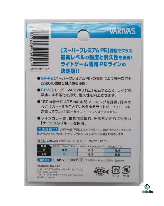 плетённый шнур VARIVAS Avani Light Game SUPER PREMIUM PE зазмотка 150м, толщина #0.3, разрывная нагрузка 6,5lb (ок.3кг), цв. голубой