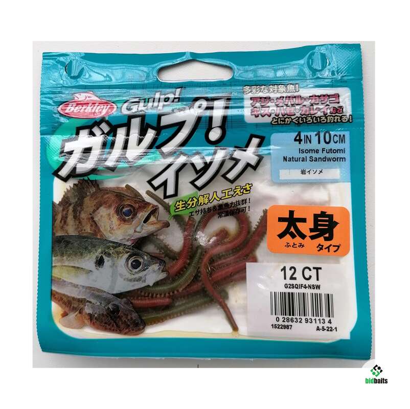 съедобная BERKLEY Gulp! SW Isome Futomi Natural Sandworm G2SQIF4-NSW 4' (10см) с аттрактантом