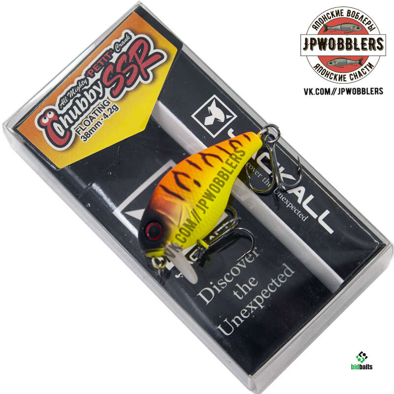 Крэнк Jackall Chubby 38F SSR создан на основе любимого рыбаками Чабби 38Ф. Отличие от предыдущей модели – короткая лопатка у SSR расположена почти под прямым углом. Эта конструктивная особенность влияет на поведение приманки в воде – воблер почти не заглубляется и хорошо играет на течении, оставляя за собой «усатый» след.