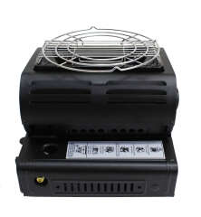 Газовый обогреватель предназначен для использования в небольших помещениях и палатках. Имеет возможность наклона в горизонтальное положение и комплектуется дополнительной решёткой для приготовления или разогрева пищи. Обогреватель очень прост и лёгок в обращении, не нуждается в обслуживании и дополнительных настройках. Работает от обычного цангового баллона 220 гр.