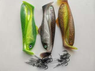 Силиконовые приманки Big Bait, собственной разработки(LSV-BAITS) не копия не реплика, протестироввпнные на Российских водоёмах, отлично ловят трофейную щуку и судака, хорошо держат течение, под заказ любые расцветки,
