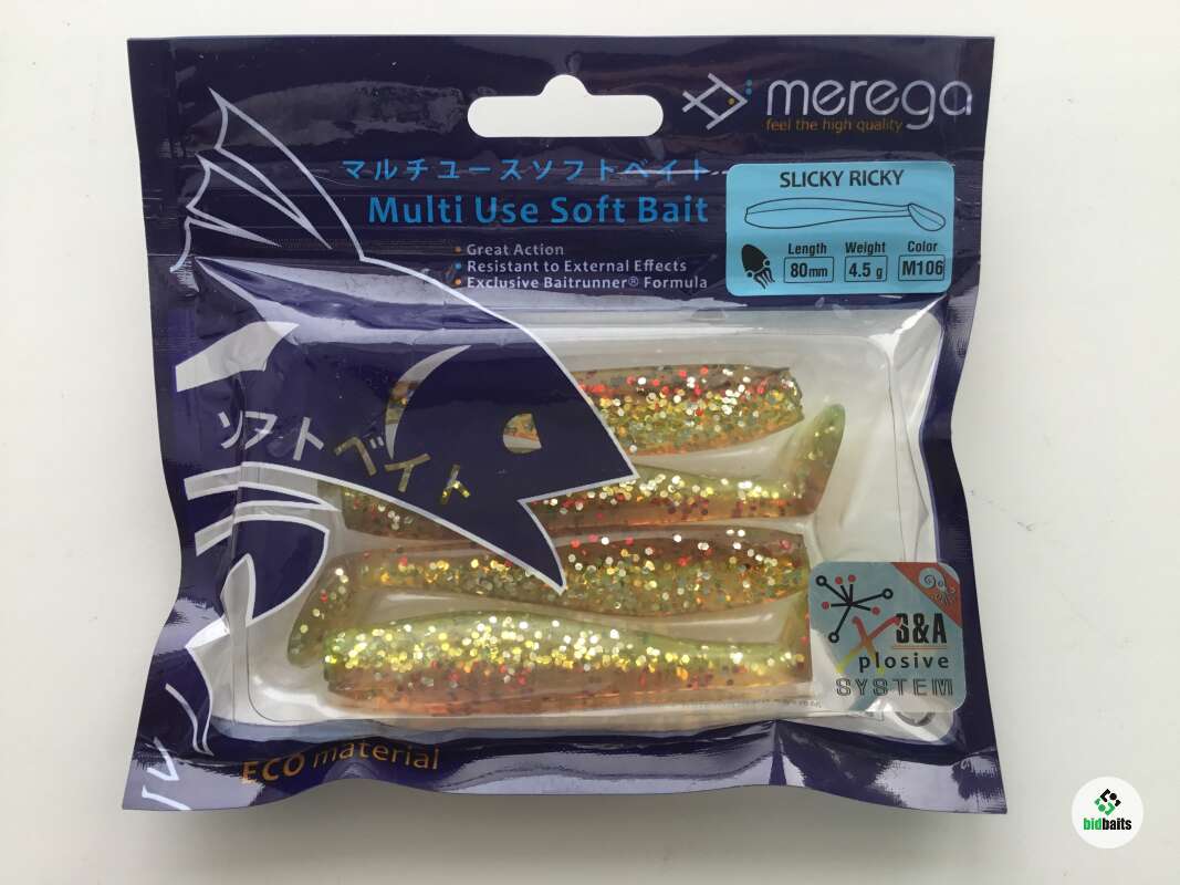 Merega Slicky Ricky - классический виброхвост с простой и проверенной формой. У него плоское тело и хвост с широкой лопастью, что делает игру силиконовой рыбки очень естественной. Такая геометрия не только делает виброхвост схожим с мальком, но и обеспечивает стабильность игры. Серия Slicky Ricky - универсальная. На этот виброхвост можно ловить как в стоячих, так и в проточных водоемах. Тип монтажа тоже можно выбрать любой, например, остановиться на поводковых или шарнирных оснастках, или выбрать монтаж типа "дроп-шот", "каролина" и "техас". В состав силикона, из которого она изготавливается, входит добавка с натуральным запахом и выраженным вкусом. Благодаря этому заглотив приманку, хищник не сразу распознает искусственную наживку. Merega Slicky Ricky ловит большинство пресноводных хищников.