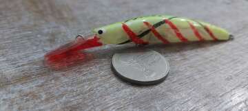 Состояние на фото - в этом случае затрудняюсь дать объективную оценку воблеру, как правило следы использования ярко выражены, может быть не всё хорошо с лкп,но видимых дефектов по функционалу не обнаружено