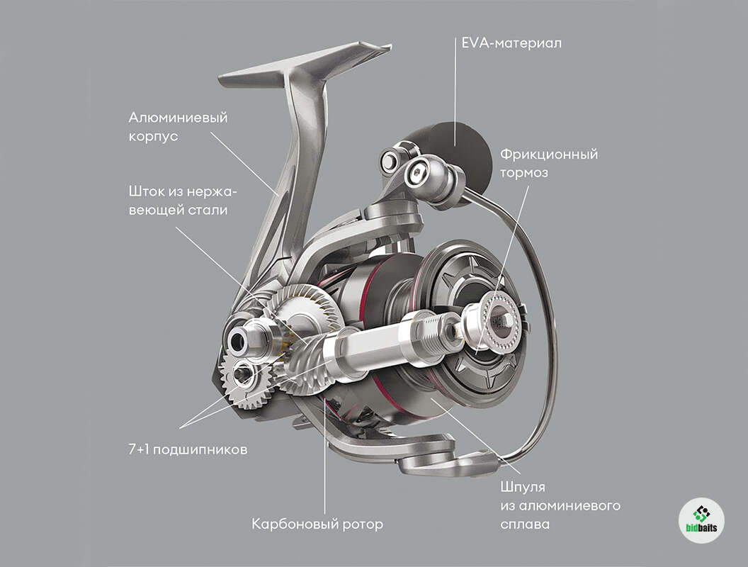 • Ручка катушки вкручивается непосредственно в главную пару, EVA-кноб комфортен даже при низких температурах;