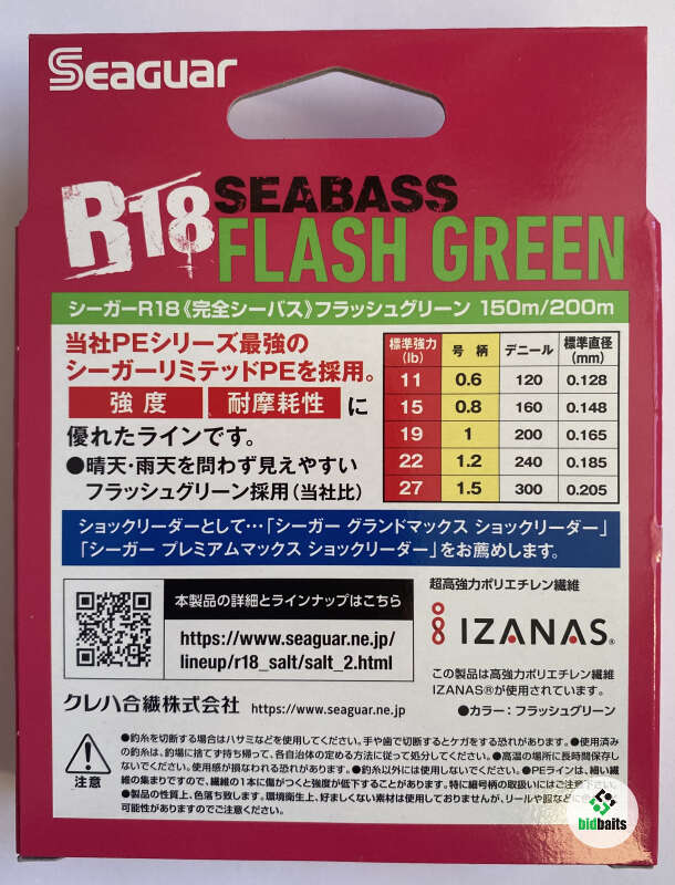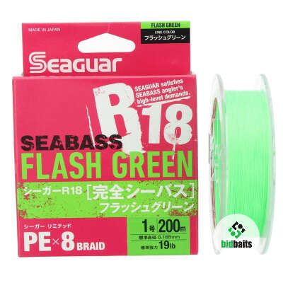Плетеный шнур Seaguar R-18 Seabass Flash Green X8 200m (150 m) - восьмижильная плетенка с круглым сечением. Шнур обеспечивает отличную дальность заброса приманок и легкое скольжение сквозь кольца. Плетенка R18 Sea Bass очень прочная и устойчивая к разрывам. Шнур с высокой чувствительностью фиксирует любые поклевки. Благодаря высокой прочности шнур может выдерживать экстремальные нагрузки. Серия может использоваться для любых техник спиннинговой ловли, хорошо подходит для ультралайтовых снастей. Плетенка Seaguar R18 Sea Bass PE выпускается в хорошо заметной ярко-зеленой окраске.