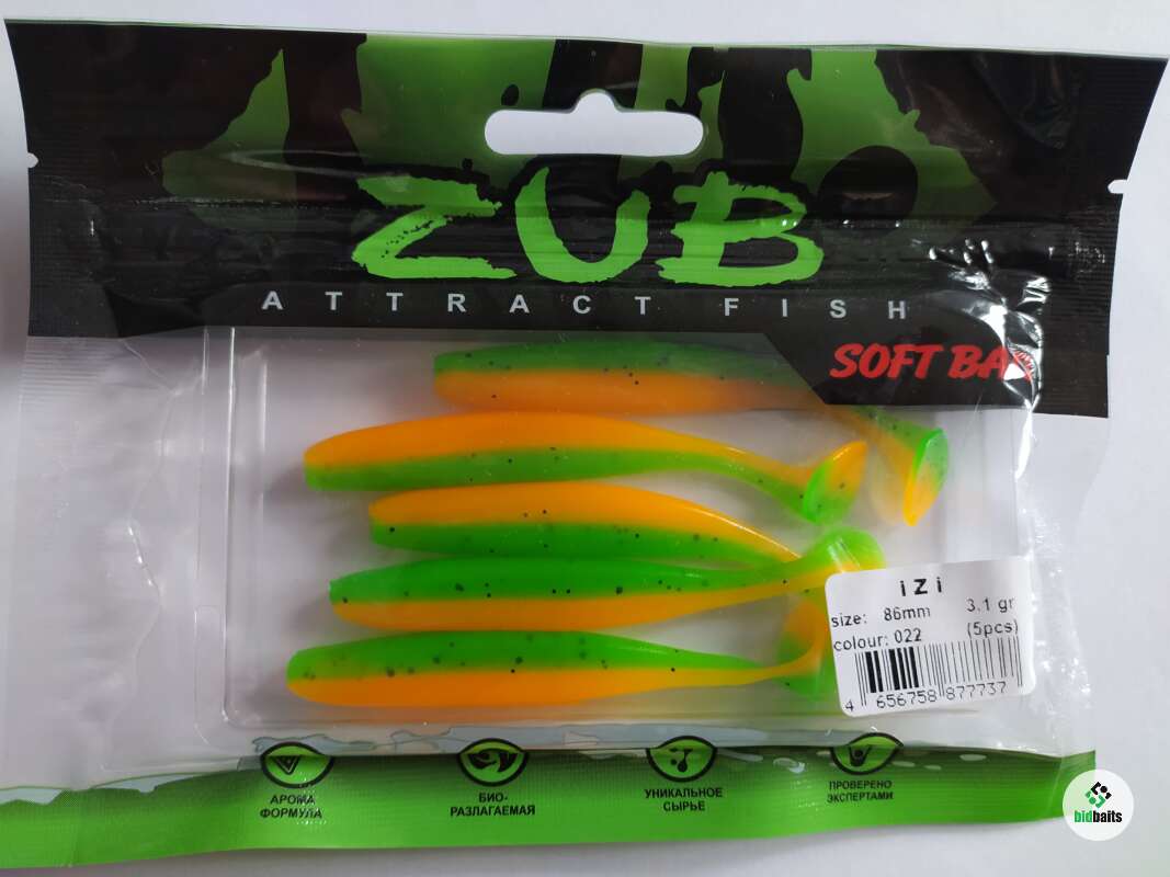 Данный тип приманок является одним из самых популярных среди спиннингистов во всем мире и давно заслужил безупречную репутацию на водоемах России. Секрет успеха кроется в простой и в тоже время очень эффективной форме, напоминающей мелкую рыбешку. Продолговатое, приплюснутое по бокам тело с массивной пяткой на конце достаточно точно имитирует движение небольшой рыбки в толще воды. Уникальный состав силикона ZUB, за счет своей мягкости придает приманке еще большую подвижность, благодаря чему IZI активно работает даже на минимальных скоростях, что дает возможность экспериментировать с проводками, подбирая необходимую под различные условия ловли. А уникальные ароматические добавки, входящие в состав силикона, еще больше увеличивают привлекательность и без того одной из лучших приманок по щуке, судаку и окуню.