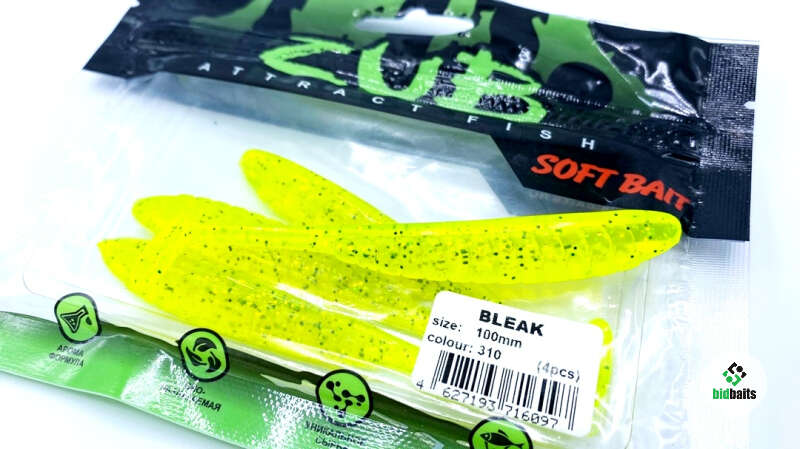 Силиконовая приманка ZUB Bleak 100 мм, в уп. 4 шт., цвет 310 желтый с блестками