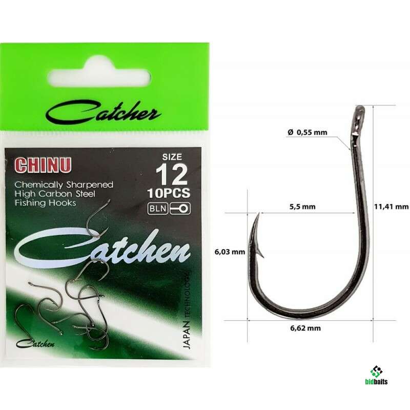 Крючок одинарные."Catcher" CHINU № 12. Крючки одинарные. (10 шт в уп)
