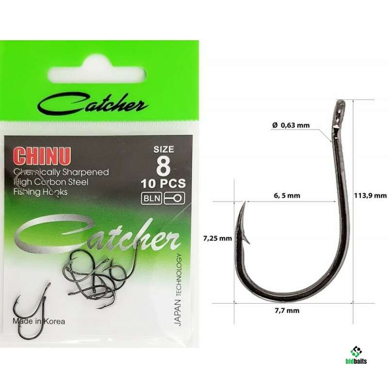 Крючок одинарные."Catcher" CHINU № 8. Крючки одинарные. (10 шт в уп)