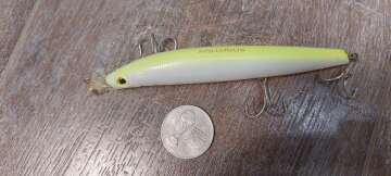 Состояние на фото - в этом случае затрудняюсь дать объективную оценку воблеру, как правило следы использования ярко выражены, может быть не всё хорошо с лкп,но видимых дефектов по функционалу не обнаружено