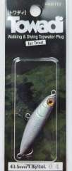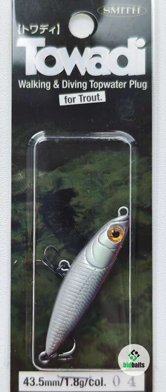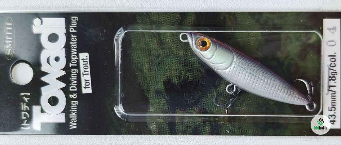 Воблер Smith Towadi– это небольшая поверхностная приманка для ловли голавля, жереха, окуня, язя, а разрабатывалась она изначально для форели. Оной из особенностей данной модели является небольшая бороздка в передней части. Это углубление действует по принципу, по которому работает поппер, т.е. издает при резком рывке соответствующий звук.