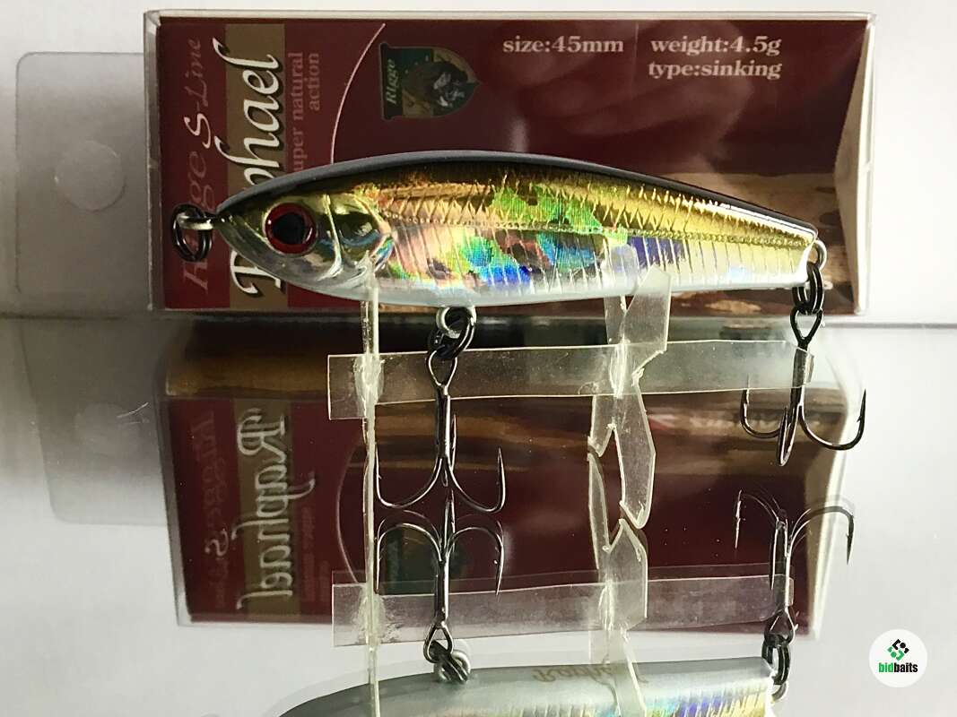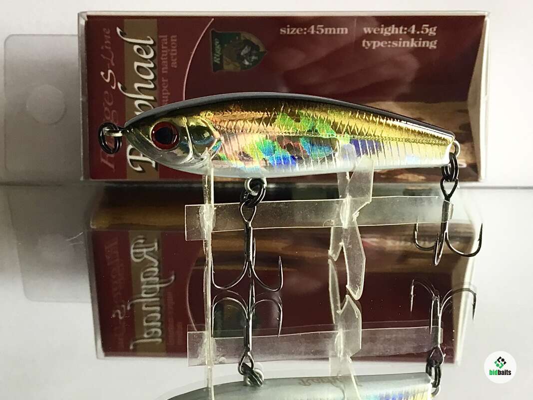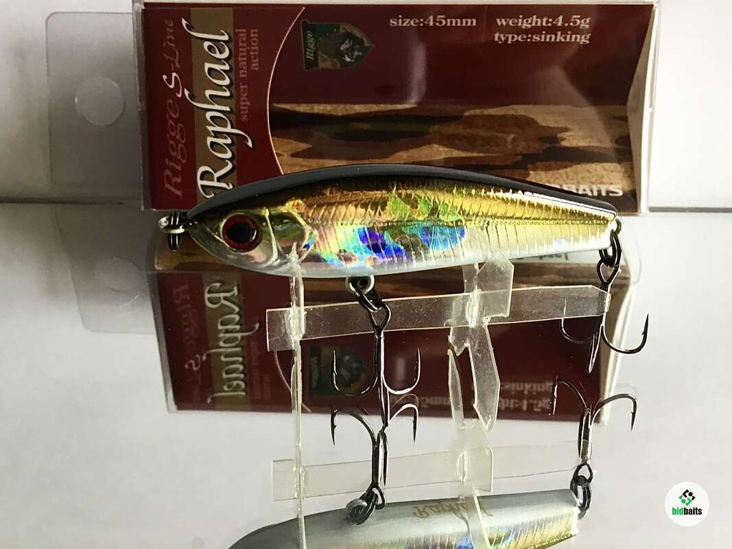 Классическое для воблеров серии прогонисто-обтекаемое тело прекрасно сбалансировано. Центр тяжести Raphael отрегулирован так, что позволяет осуществлять не только дальний прицельный заброс, но и контролировать поведение самого «уокера» уже в воде во время проводки. Ещё один небольшой конструктивный нюанс: носовая крепежная петля развернута в горизонтальной плоскости, обеспечивая тем самым незначительный подъем приманки при поступательном движении.
