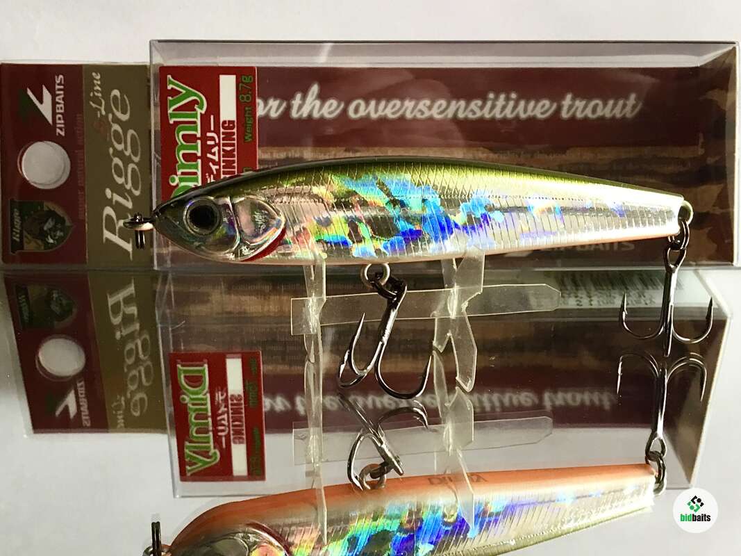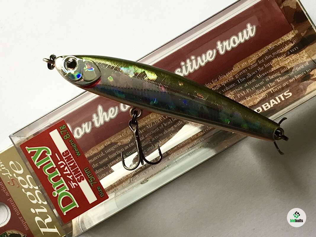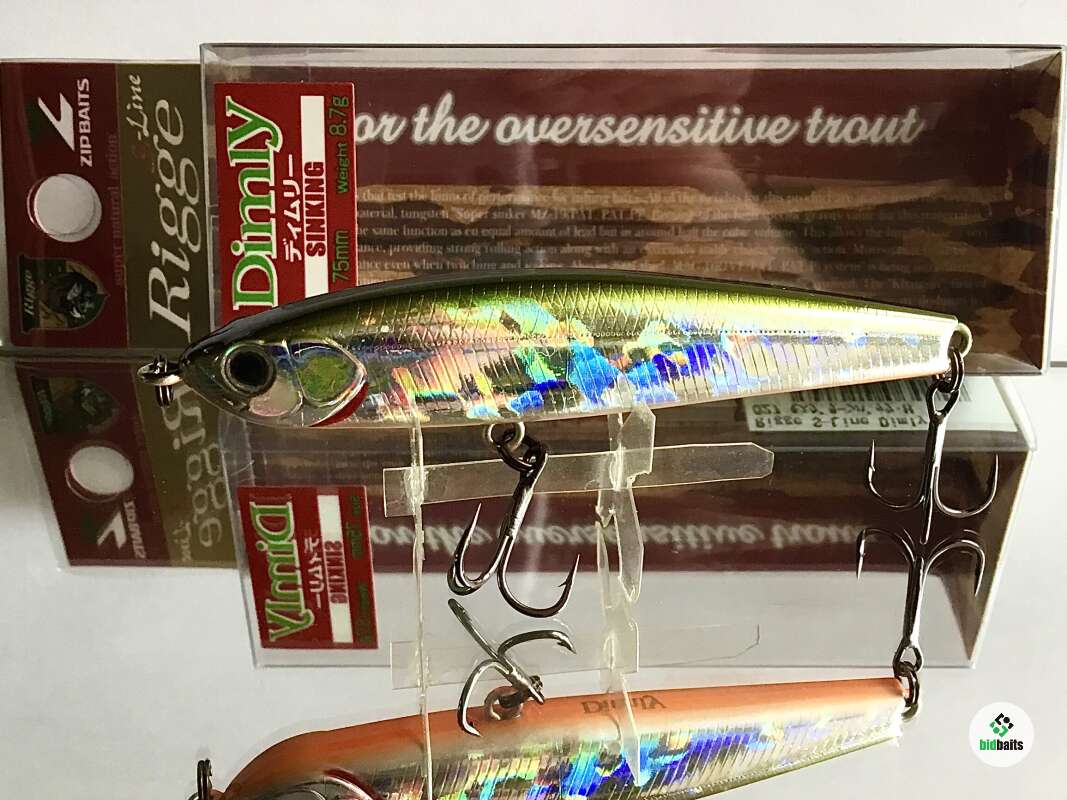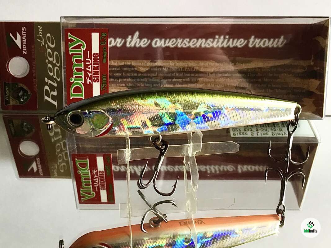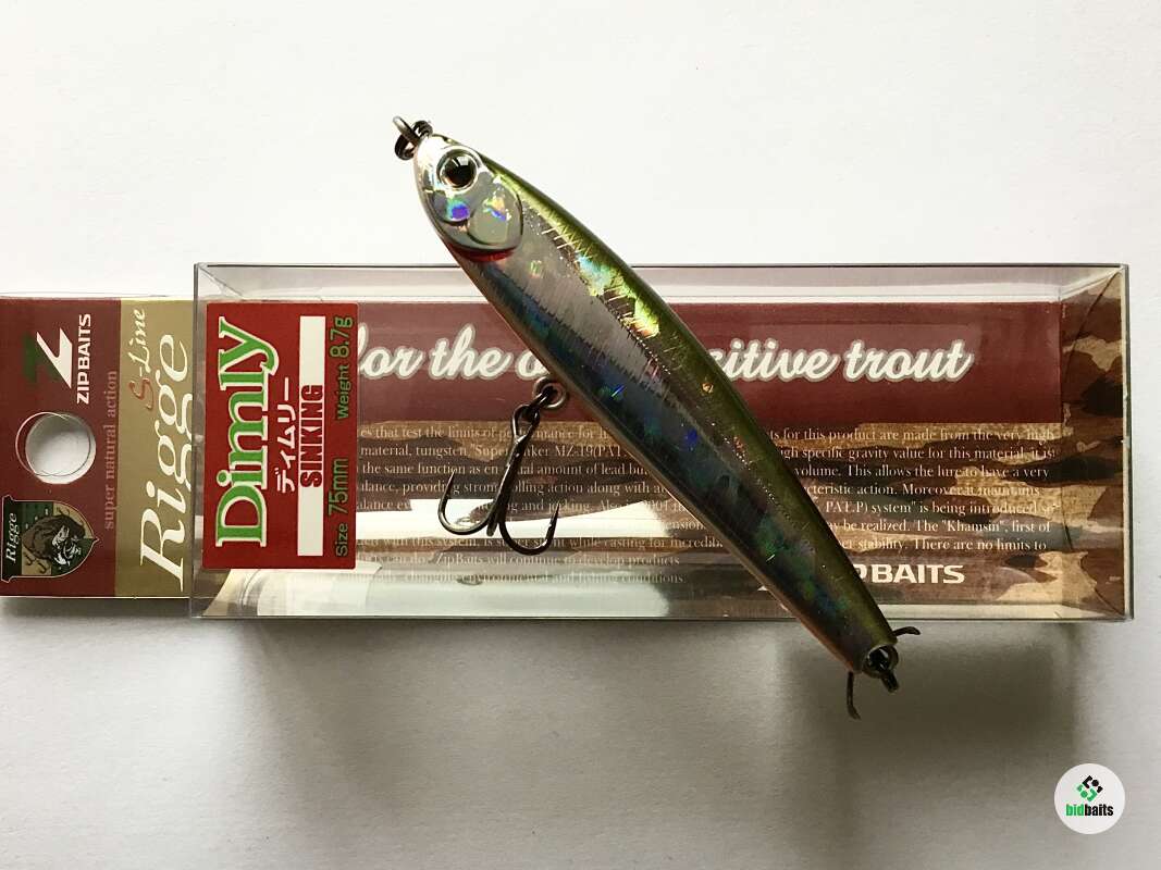 Rigge Dimly- тонущая безлопастная приманка - «уокер» от компании Zipbaits. Предназначен для ловли всевозможных хищников методом рывковой анимациии. Главным образом, активным джеркингом посредством чередования ряда последовательных потяжек удилищем с выбором лески и остановок в проводке. Наделенный обтекаемой, сбалансированной формой тела и приличной массой, Dymly обладает прекрасными баллистическими данными. Прицельный бросок на несколько десятков метров для этой приманки не составляет особого труда. Dymly незаменим при ловле сверхосторожной форели культурных рыбоводных хозяйств, подверженной сильнейшему прессингу со стороны спиннингистов. Именно в этом случае дальность броска играет решающее значение. Кроме того, Dymly с успехом используется при ловле жереха на всплеск, составляя при этом прямую конкуренцию дальнобойным металлическим приманкам типа пилькер.