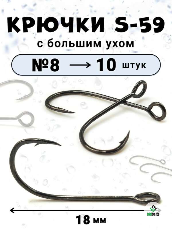 Крючок одинарный. Крючок №10 S-59 (10 шт.) большое ухо Крючки одинарные