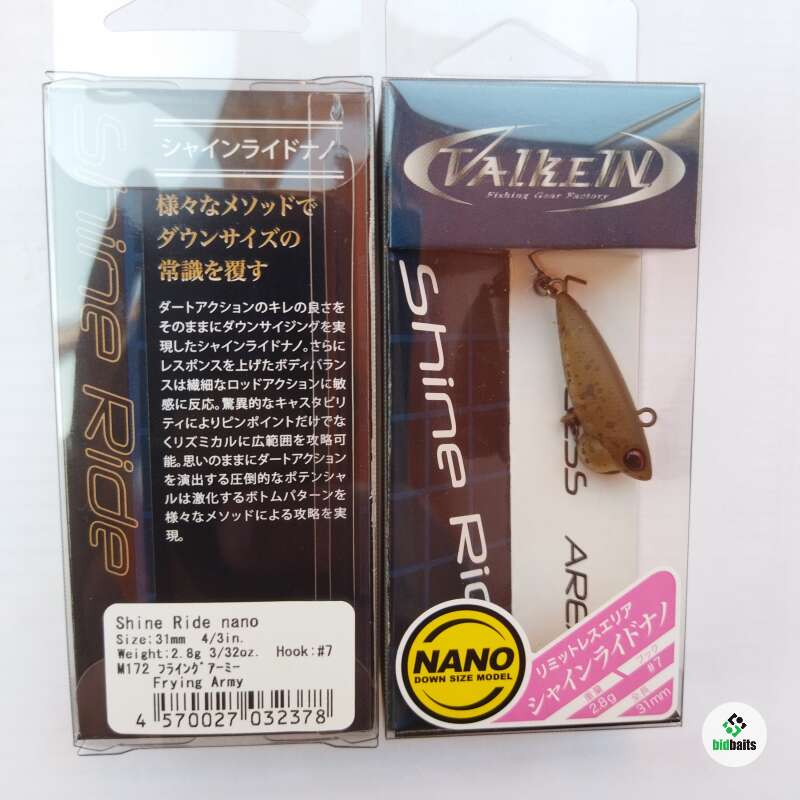 ValkeIN Shine Ride Nano - это представитель серии Нано от компании ValkeIN. Shine Ride Nano - это воблер, который предназначается для ловли форели со дна рывковыми проводками. Главным отличием от базовой модели стал уменьшенный размер, и вследствие чего менее размашистая игра. Умеренная работа приманки подходит для ловли более пассивной форели, нежели Shine Ride обычного размера, а при грамотной комбинации обеих вариаций данного донного воблера можно добиться очень хороших результатов! Выпускается в огромном количестве цветов, которые призваны удивлять форель в любой воде.