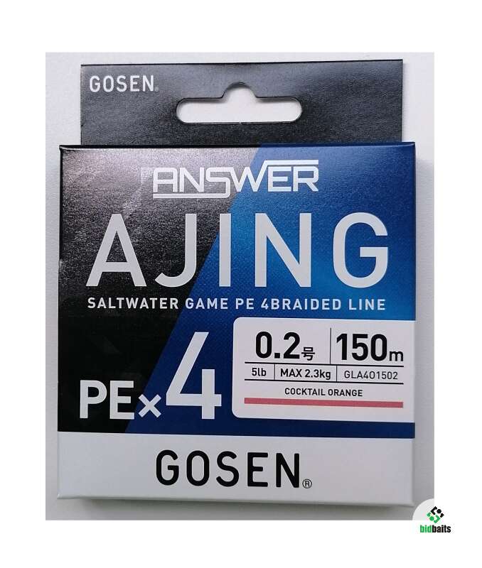 плетенный 4-х жильный шнур GOSEN ANSWER AJING PE x 4 0.2 150m 2.3kg (5lb) цв. cocktail orange.