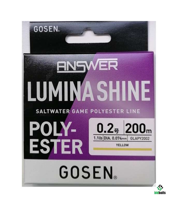 Оригинал. Япония. Новое поколение. Полиэстер GOSEN Answer Lumina Shine Polyester 200m 1.1lb ок.0,5кг #0.2 диаметр 0,074мм. Тонет. Yellow желтый эстер для ловли в солёной воде.