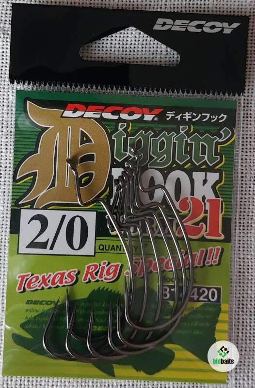 Офсетный крючок Decoy Worm 21 Diggin Hook имеет слегка выгнутое вверх ушко, которое в воде обеспечивает необходимое расположение приманки в отношении используемого груза. Благодаря тому, что удлиненное цевье имеет достаточный выступ над ступенькой, удерживающей приманку, изделие очень комфортно применяется с червями и прочими объемными приманками (виброхвостами, большими твистерами), которые особенно любят наши местные щука и судак.