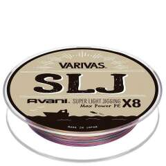 Varivas Avani SLJ Max Power PE x8 - премиальный восьмижильный плетеный шнур, предназначен для ловли в солёной и пресной воде. Отлично подходит для среднего и лёгкого джига. Фирменные технологии компании Varivas: PE и MAX-PE, делают данную серию плетеных шнуров тонкими, и в тоже время очень прочными на разрыв, в сравнение с обычными PE шнурами того же размера. Благодаря фирменной технологии SP-H, плетеный шнур обрабатывают специальным покрытием, которое делает его скользким, прочным и абразивоустойчивым. На плетёный шнур нанесена цветная маркировка 5 цветов по 10 метров, что делает удобным контроль приманки в воде.